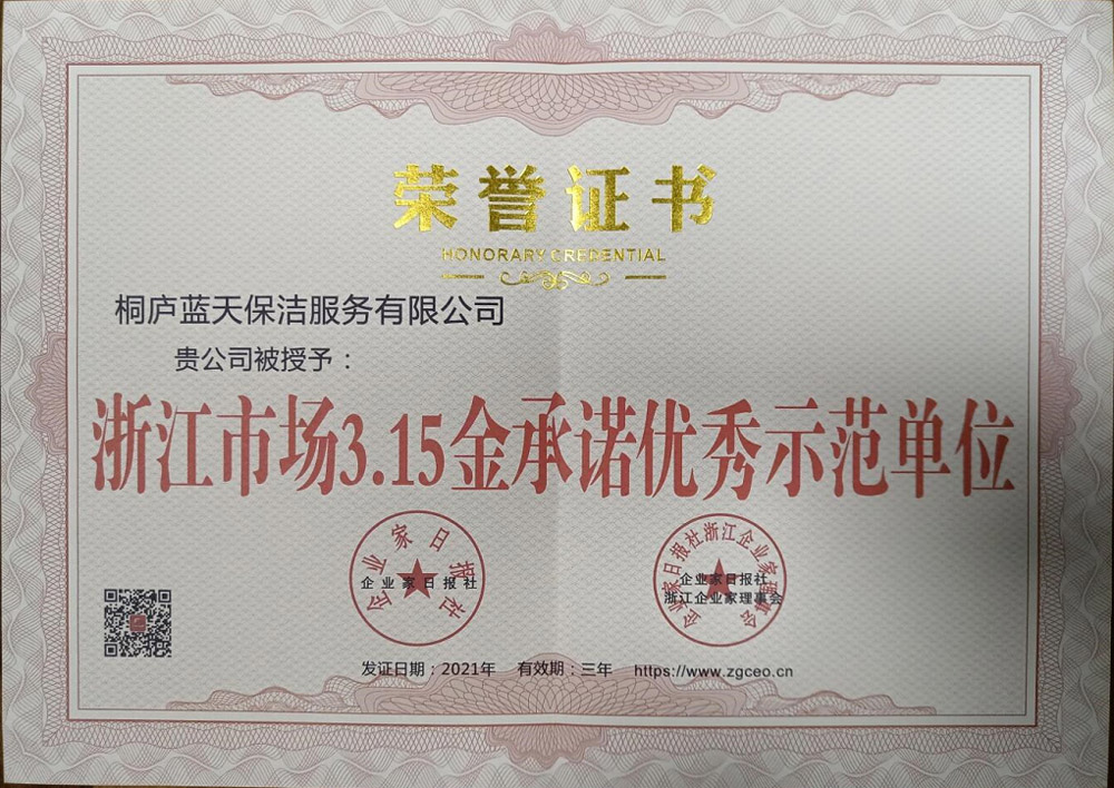 自1998年從事家政服務以來,為廣大群眾提供了便捷、高效的保潔服務,獲得了良好的口碑,成為杭州桐廬縣家政服務規模好大、信譽良好的“藍天”品牌。公司積極主動參與社區居民公益性活動,并經常性地上門為低收入家庭、孤寡老人等群體提供免費家政服務。同時廣泛參與社會公共保潔服務項目和單位保潔服務項目,如縣城城南城北中心市場周邊道路保潔、客運中心、工商銀行、桐廬城南街道辦事處、移動公司和縣公安局等保潔衛生等項目,得到了社會各界和服務單位的認同,先后被授予浙江省信用企業示范單位、質量信得過單位、質量服務信譽企業等榮譽稱號。自2009年以來,我公司中標桐廬城區城市“牛皮癬”治理項目,以專業細致的服務,維護了桐廬潔凈的家園,更為“示范文明縣城”和省級文明衛生城市的創建作出了積極貢獻,贏得了市民一致好評和社會廣泛贊譽。在作業技術標準上,做到“色、形、潔、美”的有機結合,達到自然、和諧;在處理非法粘貼廣告上,按照“一刮、二鏟、三粉刷”程序操作,使作業墻達到干凈、整潔,不留粘貼痕跡,盡量不損壞建(構)筑和顏色;在作業要求上,在責任區內實行“三定管理”(定人員、定區域、定責任),并配備相應的管理人員和懂配色的專業人員,在責任轄區內進行定期或不定期的檢查,擬訂城市“牛皮癬”清理保潔實施方案,統籌安排年度工作計劃,優化管理模式,開展街道清理“牛皮癬”競賽活動,我公司自承攬桐廬城區城市“牛皮癬”清洗保潔服務工作6年以來,堅持長效管理,優質服務,高效運作,取得了很大的成效,全部被評為“優秀”,受到了城市管理部門和市民群眾的一致肯定和好評。